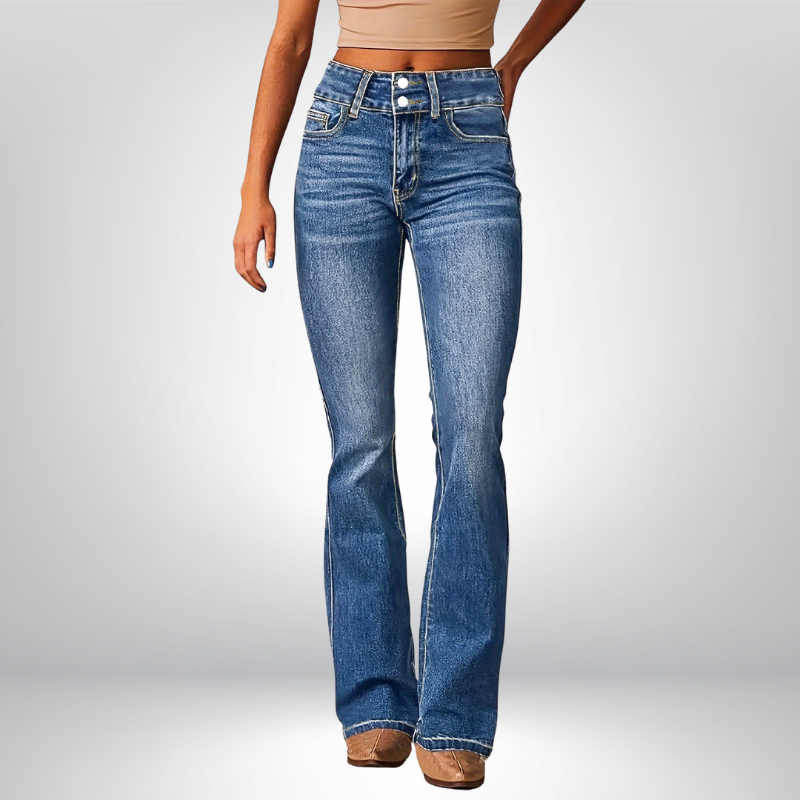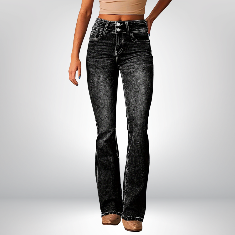 Jeansy CLARA charakteryzują się eleganckim krojem, który doskonale podkreśla sylwetkę. Rozszerzana nogawka nadaje im wyjątkowego stylu, sprawiając, że są idealnym wyborem na różne okazje.